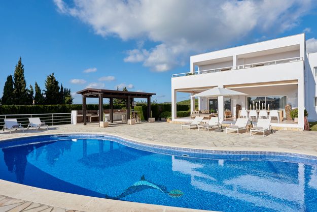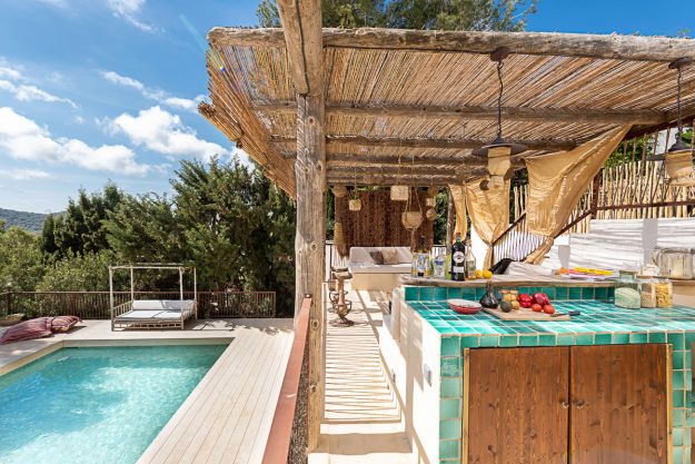 Villa de 550m2 con 6 dormitorios y vistas al mar, Ibiza y Formentera, cocina exteriro y piscina